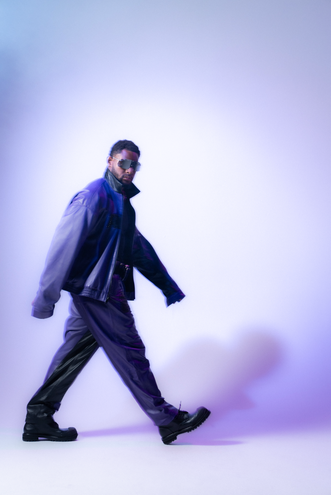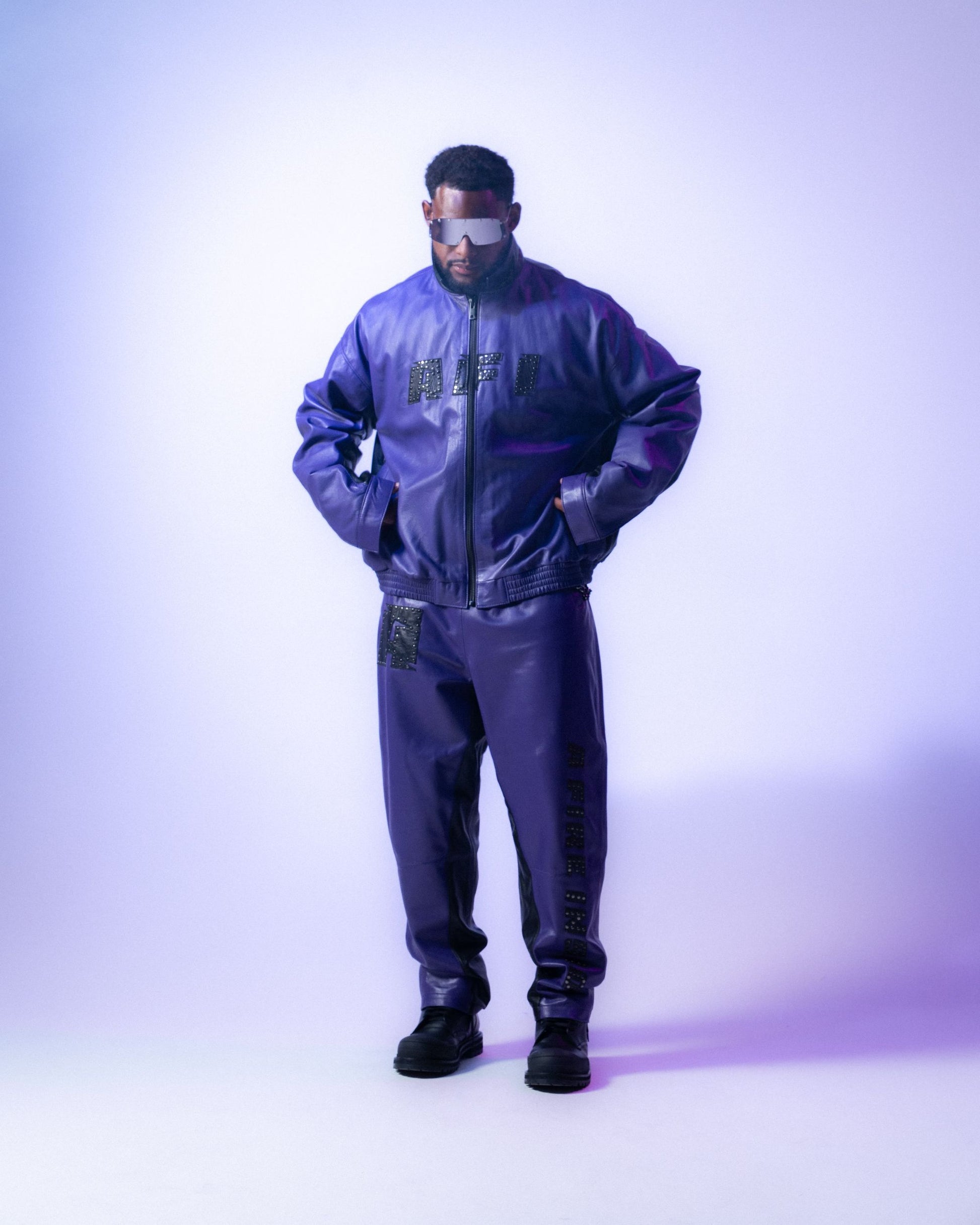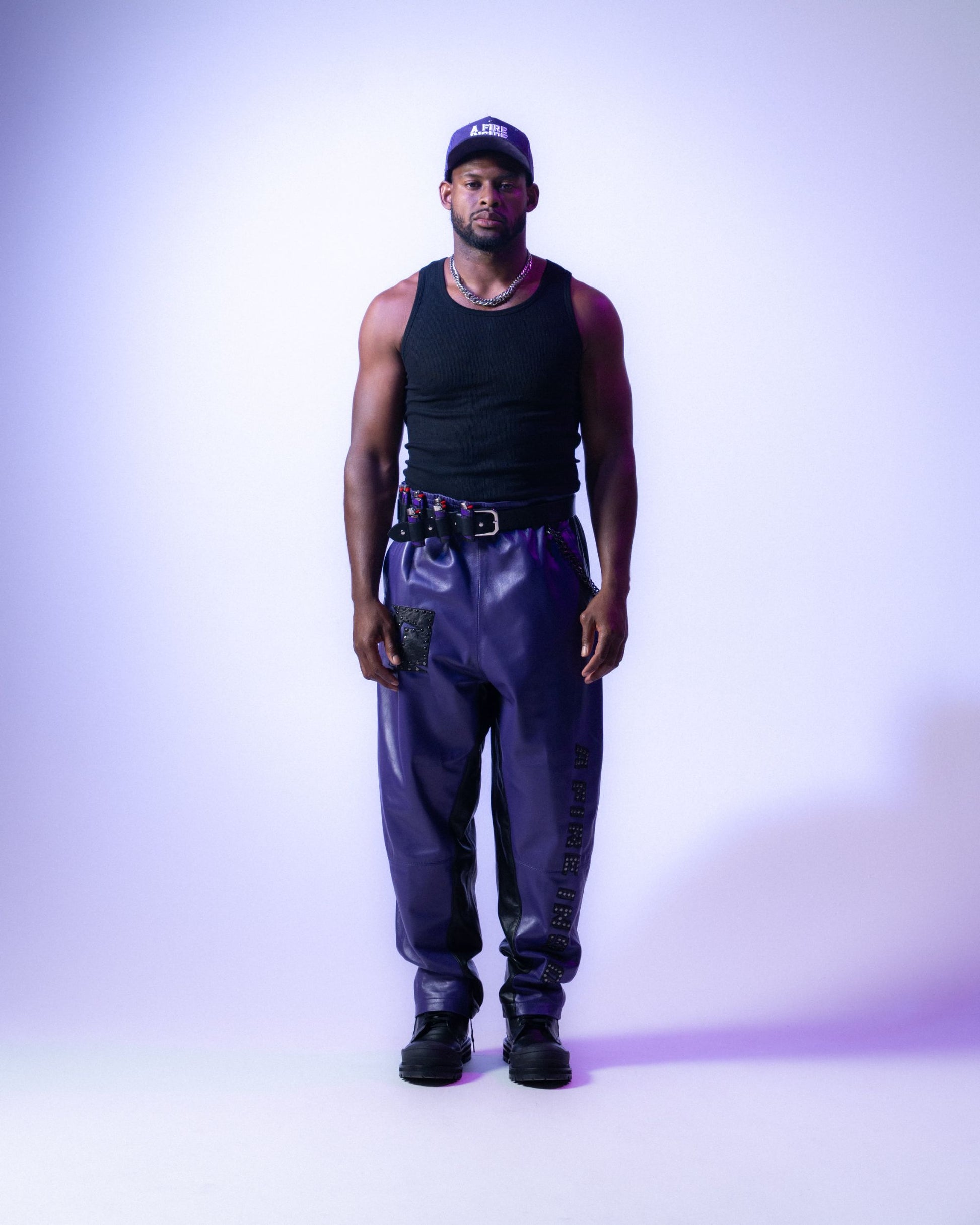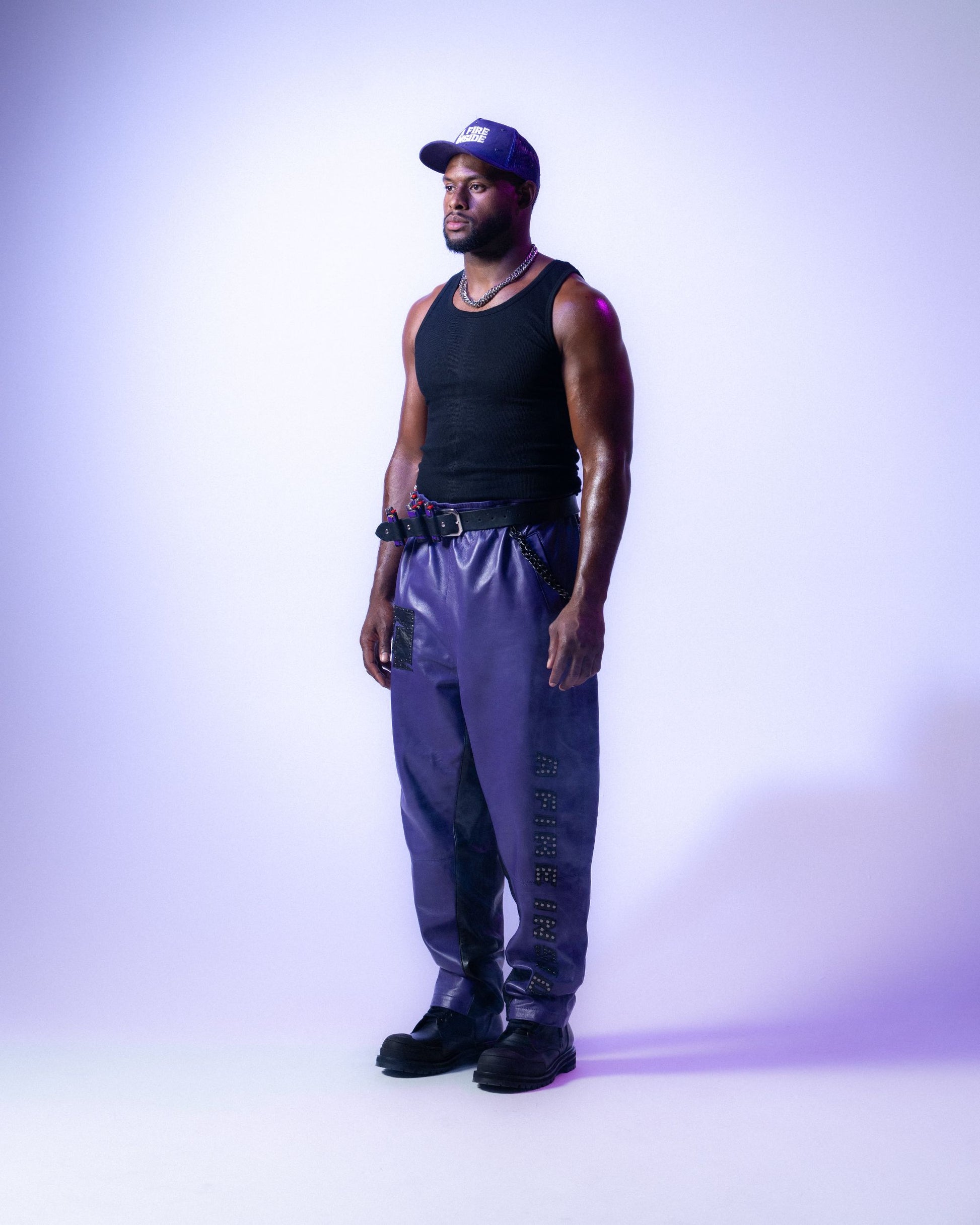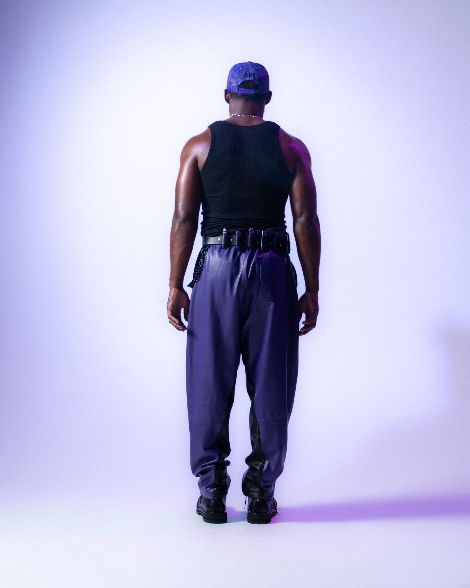 BLACK AND PURPLE LAMBSKIN LEATHER PANTS
